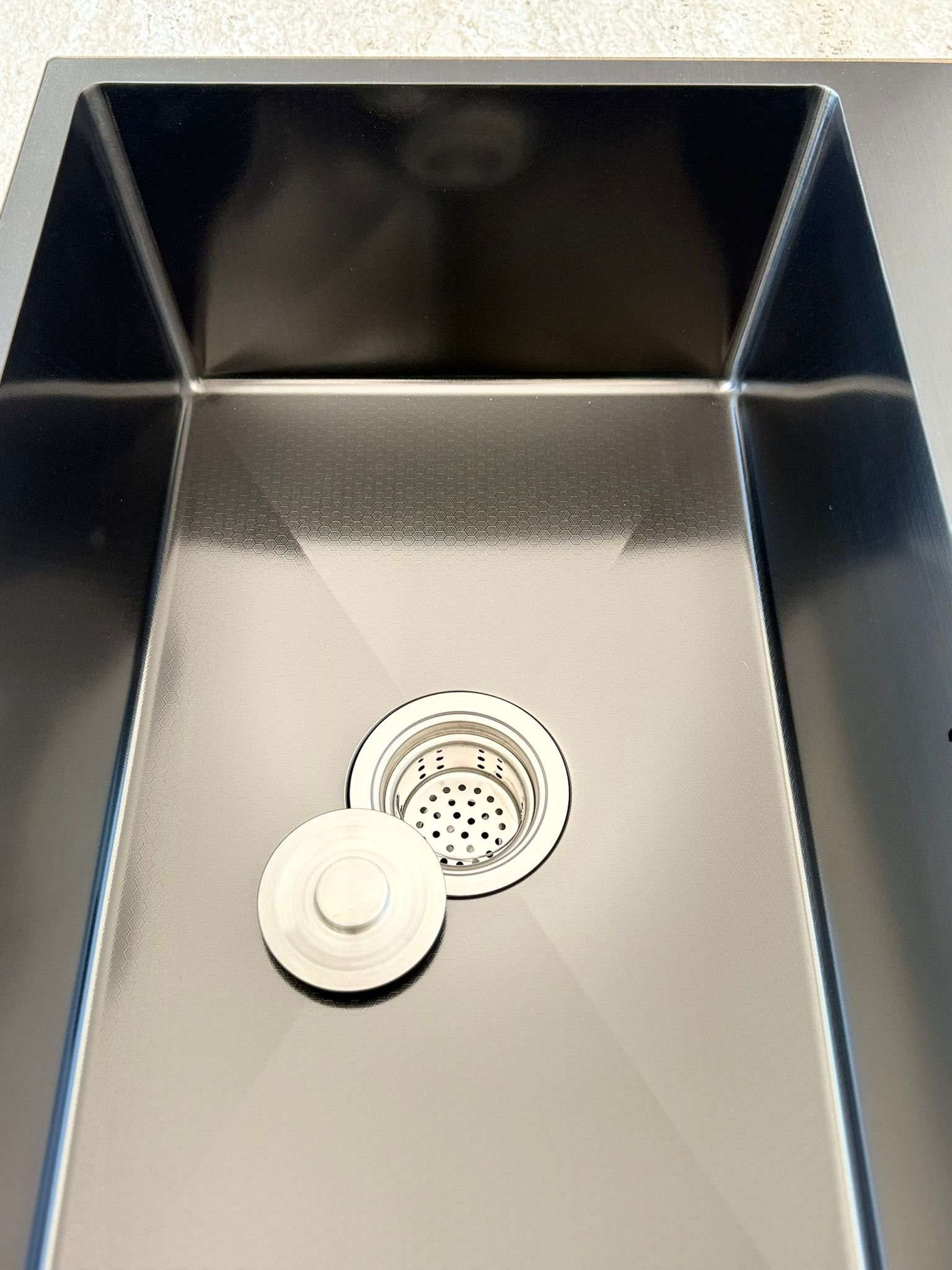 Modern ve dikkat çekici bal peteği desenli yüzeyiyle Urban Steel evye, estetik tasarımı dayanıklılıkla birleştirir. Hem şık hem de fonksiyonel yapısıyla mutfağınıza değer katar.
