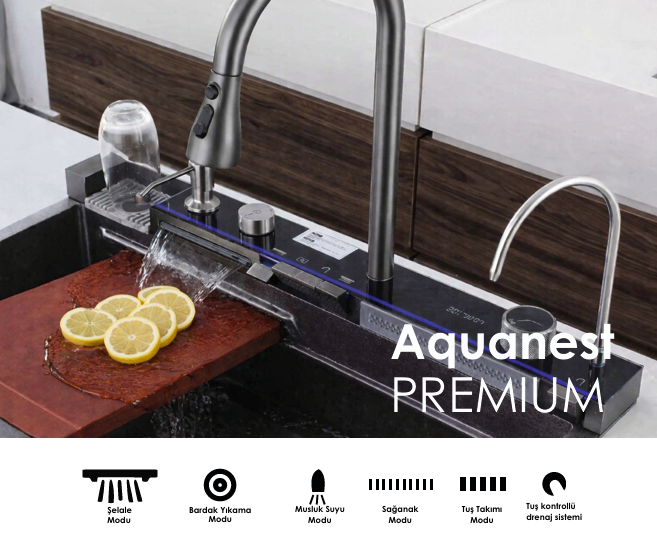 Aquanest Premium Akıllı Evye, ileri teknolojiyle tasarlanmış lüks detaylarıyla